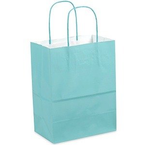- This attractive aqua blue shopping bag is made of slightly glossy heavy weight paper.