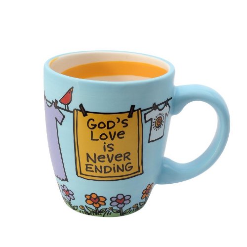 Enesco gift presents a portfolio of award winning artists and products globally recognized for their quality, originality and sentiment. For more than 50 years, enesco has been manufacturing the worlds most beloved gift, garden and home dcor products. Cute ceramic mugs with attitude from artist lorrie veasey; "god's love is never ending-like my laundry pile."