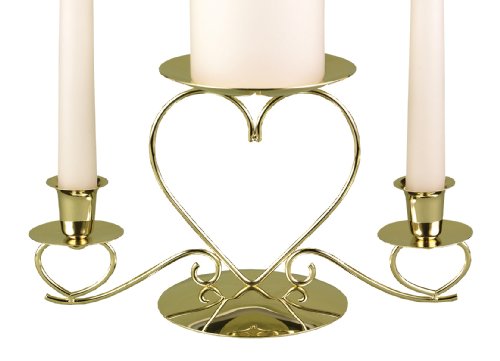 - Gold-tone Unity Candle Holder with triple heart design
