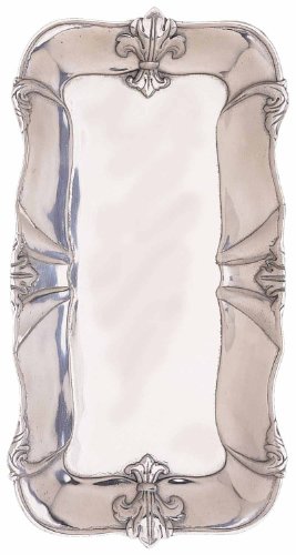 Great for entertaining, this Arthur Court oblong fleur-de-lis serving bread tray is both beautiful and functional. The design features a romantic fleur-de-lis pattern around the perimeter, while the center has a polished mirror finish. This 12-inch tray will be gorgeous on display as a home accent piece, and is perfect for serving your guests. Manufactured with Arthur Court's premium signature aluminum alloy.