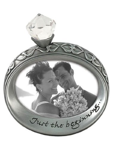 picture frames / photo frames: Just the beginning . . . Clever wedding ring frame serves as a lovely remembrance of a couple's special day. Florentine silverplate finish. Inscription is cast into the piece for a quality look and feel. Easel back for tabletop display. Crystal clear glass lens. Crafted by Malden Designs for SendAFrame.