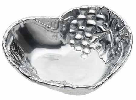 Arthur Court Designs produces an abundance of decorative, hand-crafted aluminum items for the home in various themes. One of the most extensive collections is Grape, a timeless pattern that features grape clusters, leaves, and vines beautifully sculpted on a wide range of trays, serving bowls, and accessories. This seven-inch, heart-shape bowl in a brightly polished finish serves candies and snacks and makes an excellent gift for any occasion, especially Valentine's Day. A larger heart bowl, also decorated in the grape motif, pairs nicely with this one.