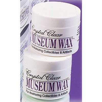 Museum Wax - For Anchoring Collectibles & ArtifactsFor years, Museum Conservators have been using various blends of microcrystalline waxes to anchor priceless art, historical artifacts and antiques from breakage due to earthquakes and accidents. Our Crystalling Clear Museum Wax is the same formulation with the qualities required by museum professionals - non-acidic, non-toxic and reversible. The wax is soft and sticky to allow flexibility in shaping various size pieces.Contains 50 grams of product