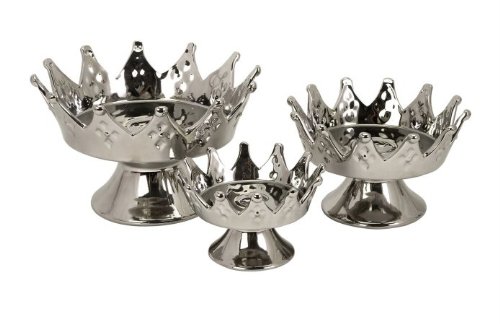 Inspired by the recent wedding of Prince William, this set of handcrafted ceramic Kingston cake plates feature a silver reflective finish and are food safe. This stackable set of crowns shares a little bit of royalty for a lot less money. IMAX's exclusive set includes three, measuring 4-5-6-1/2-Inch high x 6-8-10-Inch in diameter.