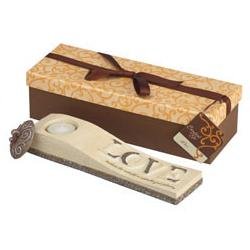 Comfort to Go by Pavilion features an elegant travertine stone finish. The sentiment is carved into each item and topped with a decorative, aged bronze finished lid. Each piece will come in a stylish gift box to make for the perfect "Gift to Go".