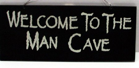Humorous rustic-looking wood sign is perfect for your man cave! Welcome to the man cave. 11" x 4.5" x 3/16" plus wire hanger.