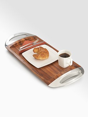 The Detailed Description of Nambe Grand Wood Tray, 30-Inch by 12-InchFeatures