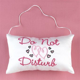 White satin pillow with cord for hanging on a door features ""Do Not Disturb"" and hearts embroidered in pink. 8"" x 5 1/2""." Sold Individually Please note: If there is a color/size/type option, the option closest to the image will be shipped (Or you may receive a random color/size/type).