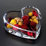 Mouth blown european romance heart shaped bowl made of thick glass with angular cut 8 by 7 by 2.5-inch.