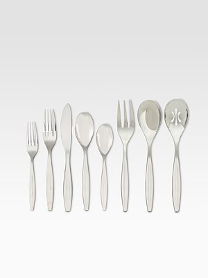 Offered for the first time in a set, our Grace Flatware is understatedly elegant - and a joy to eat with. On each piece, rounded stems taper and then blossom into simple, elegant tines and concave curves. Slight indentations bedeck the stems, like ripples on a calm lake, and for added visual interest, the larger serving pieces are perfected by curlicue cut-outs.