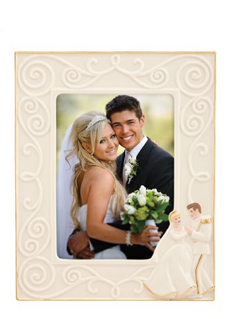 Preserve those romantic photos alongside favorite Disney characters in an ivory china frame. The beloved Disney couple is hand painted. Crafted of hand-painted Lenox ivory fine china. Accented with 24 karat gold. Holds a 5" x 7" photograph. Height: 9 3/4"