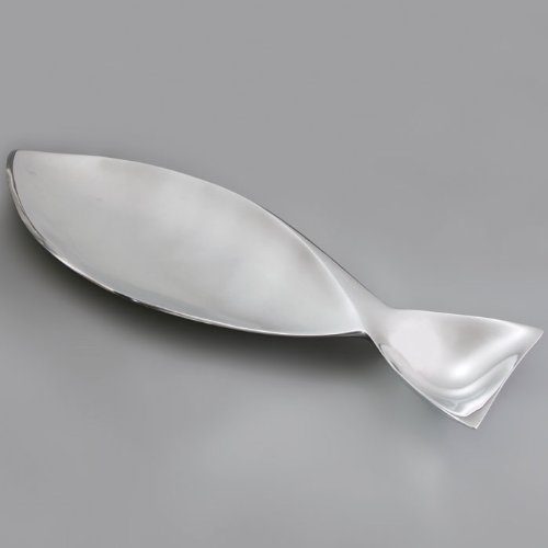 Infuse your collection of serving pieces with a little bit of under-the-sea whimsy with our fish-shaped platter. With its streamlined shape crafted from Nambe's timeless alloy, this elegant number is just as chic at it is fun. Choose this larger size Fish Platter for serving up snacks like sushi and egg rolls- the tail is perfect for soy or plum sauce. Kids feeling a little fancy? Spoil them by serving up their favorite fish-shaped snacks on this beauty.