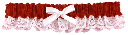 - Red garter, with white bow and a small white lace ruffle underneath