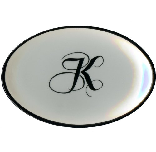Letter - K. Monogrammed gifts offer a personalized touch that is perfect for any gift giving decision. Beautiful white porcelain decorated in black trim around edge and capital letter initial. The classic and classy design can be used as a coin holder in any room or a great soap dish for kitchen and bath. Made for easy care, just wipe clean. Measures 5.5 x 3.75 x .75 inches
