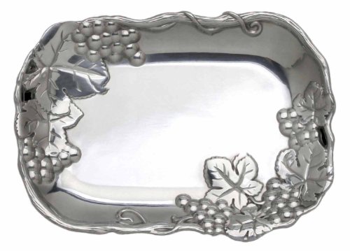 This Arthur Court Grape Catch-All Coupe Tray is a piece that knows how to multi-task. Great for condiments, olives, nuts or crackers, this tray also is beautiful on the dresser in the bedroom, to catch all those items that come out of your pockets at the end of the day. Manufactured with Arthur Court's premium signature aluminum alloy, this tray features a grapes and leaves design and measures 9-1/2 by 7 inches. Packed in a handsome box, this piece makes a great gift.