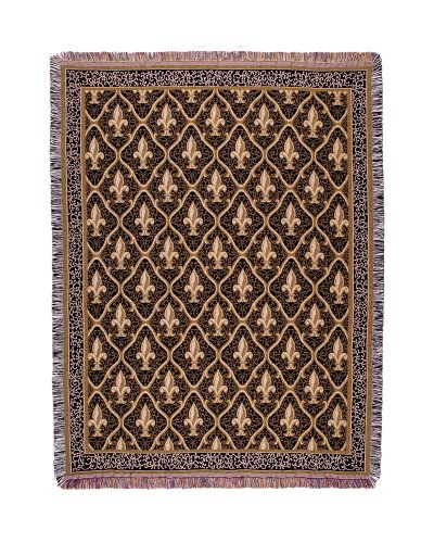 Charm any friend with this cozy tapestry throw blanket! Can be used on the bed, couch, or even as a decorative wall hanging. The blanket features patterned gold fleur de lis' with a red background. It is made in the USA and is high quality woven blanket and 100% cotton. The dimensions of the blanket, 50 X 60 inches. Please machine wash cold and tumble dry low.