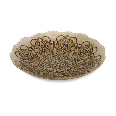 Perfect for every occasion, from formal to not, this glass serving bowl by IMAX is foodsafe and can be used to present a favorite dish or to hold the decorative filler of your choice. The frosted white glass and bold gilded pattern will elevate any table. The Talbot Glass Bowl measures 3"h x 15.75"d. Designer tip: Try filling with a collection of small candles and use as a centerpiece.