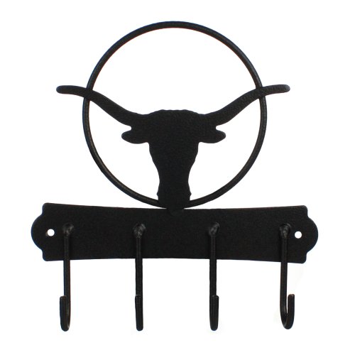 - handmade iron key holder featuring iron made longhorn