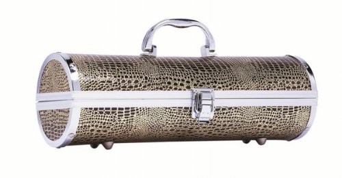 This lovely wine purse is perfect for the wine diva! Include a corkscrew and elastic strap to keep your bottle secure. The bottom of the tote is footed in chrome to sit gracefully. Great as a wine tote, or a purse! Can be used for other purposes also if you don't like to carry wine. This wine purse is made with adorable chameleon brown fabric. Approximate size: 13" L x 4.25" Diameter.