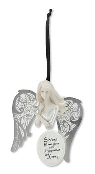 - Reads, "sisters fill our lives with happiness and love", finely meshed silver plated angel wings