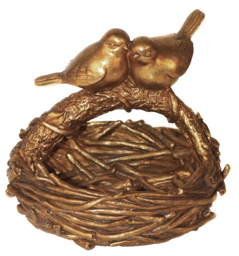 Golden basket appears to have been woven from twigs by the Lovebirds sitting on the branch handle. Created from composite materials with an antiqued gold finish. Basket is 8.5-inches tall x 9.5-inches long x 8.5-inches wide. Sweet gift for a engaged couple or baby. Sterling Industries specializes in bringing creativity and imagination to decorative home accessories. Sterling's strong design innovation and quality manufacturing ensure products that are stylish and in demand. Give a gift your friend, loved one - or you! - will enjoy every day.