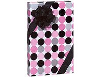 GLOSS BLACK, PINK & GRAY POLKA DOT high quality wrapping paper!! It will come to you ROLLED not folded flat, so no crease marks. Measures 24 inches wide by 16 feet long - that's 32 square feet of YUMMY!! Wraps approx. 8-10 shirt sized gifts!