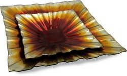 The Painterly Glass Chargers were inspired by sought after vintage glass collectibles, and then updated with an iridescent finish. Although artisan-crafted and beautiful enough to use for display only, don't! The food safe pieces are perfect for entertaining or displaying your favorite filler. Set includes two chargers. The small measures 15 inches square, the large measures 21 inches square, and the set is brought to you, exclusively, by IMAX. Due to the nature of these artisan crafted pieces, some slight variations in size, shape, or color is considered normal.