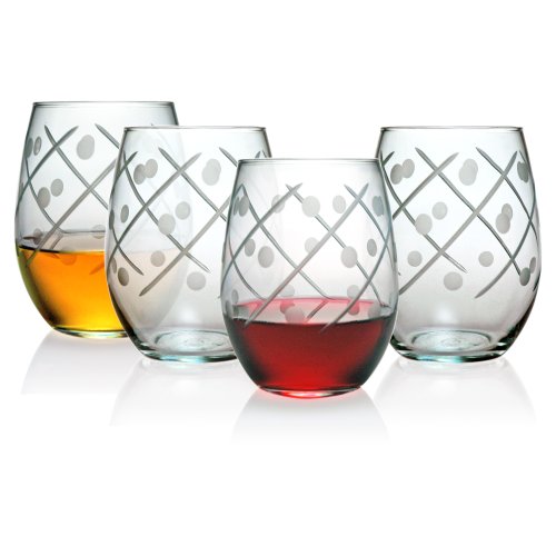 Whether brightening your breakfast table or accenting an afternoon sangria, this set of four versatile stemless wine glasses will become a favorite in your glassware collection. Upon holding each glass, youll notice how the unique Twist design is cut deeply into the surface, offering texture not found on ordinary glassware. These sturdy and modern tumbler alternatives lend themselves to wine, water, juice or any chilled beverage. Practical enough for everyday use but refined enough for more formal occasions, the glasses possess a timeless quality that will shine for years to come. Each holds a generous 21-ounce and stands at 4.625-inch tall. For a whimsical table, explore all the collections available: Twist, Tartan, Ribbons, Harlequin, Domino, Pearls and Spiral. Also available in 13-1/4-ounce. Double Old Fashioned Tumbler, 19-ounce. All Purpose Wine and 15-1/2-ounce. Hiball Tumbler.