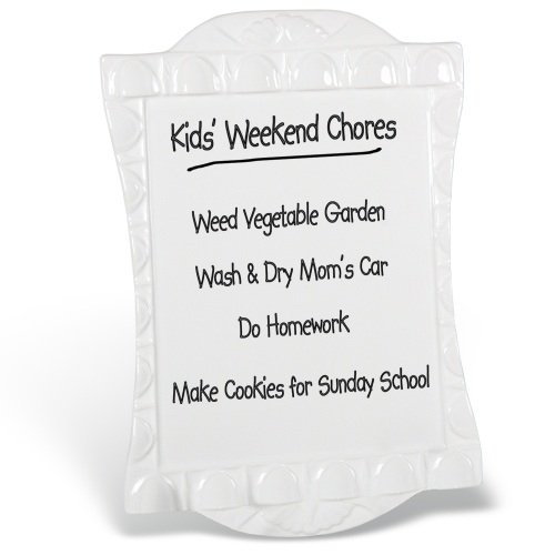 This bright white MessageTile is sized 14-inch h by 10-inch w and is perfect for all of your family or large scale messages or notes. Made of erasable ceramic, its bold embossed design is elegant, but yet this piece is so functional. Use along with our wrought iron easel (sold separately on the Accessories page) or it is ready to hang on the wall. Gift boxed in our signature blue box along with a dry-erase marker.