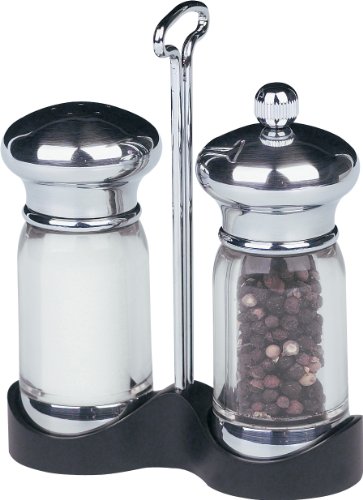 Keep salt and fresh ground pepper when and where you need it with Trudeau's Mini-Evolution Salt Shaker and Pepper Mill Set. Each stands 4-1/2-inch tall. Set has a lovely, versatile design and includes rack. Mill features a high quality grinder that's made of ceramic. The ever sharp ceramic grinder will never rust and the cut then grind mechanism maximizes flavor. Mill and shaker comes filled and ready to use. Mirror finish and acrylic. Lifetime warranty. By Trudeau, a company that develops visionary products. Add an exciting flavor to your day, with Trudeau. Style, eloquence and innovation - Trudeau, letting you savor life's little moments.