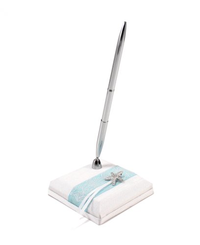 Sitting beside the Seaside Allure Guest Book this satin wrapped pen will complete your welcoming table. Made with the stunning embroidered seashell with starfish detail fabric a truly great match.